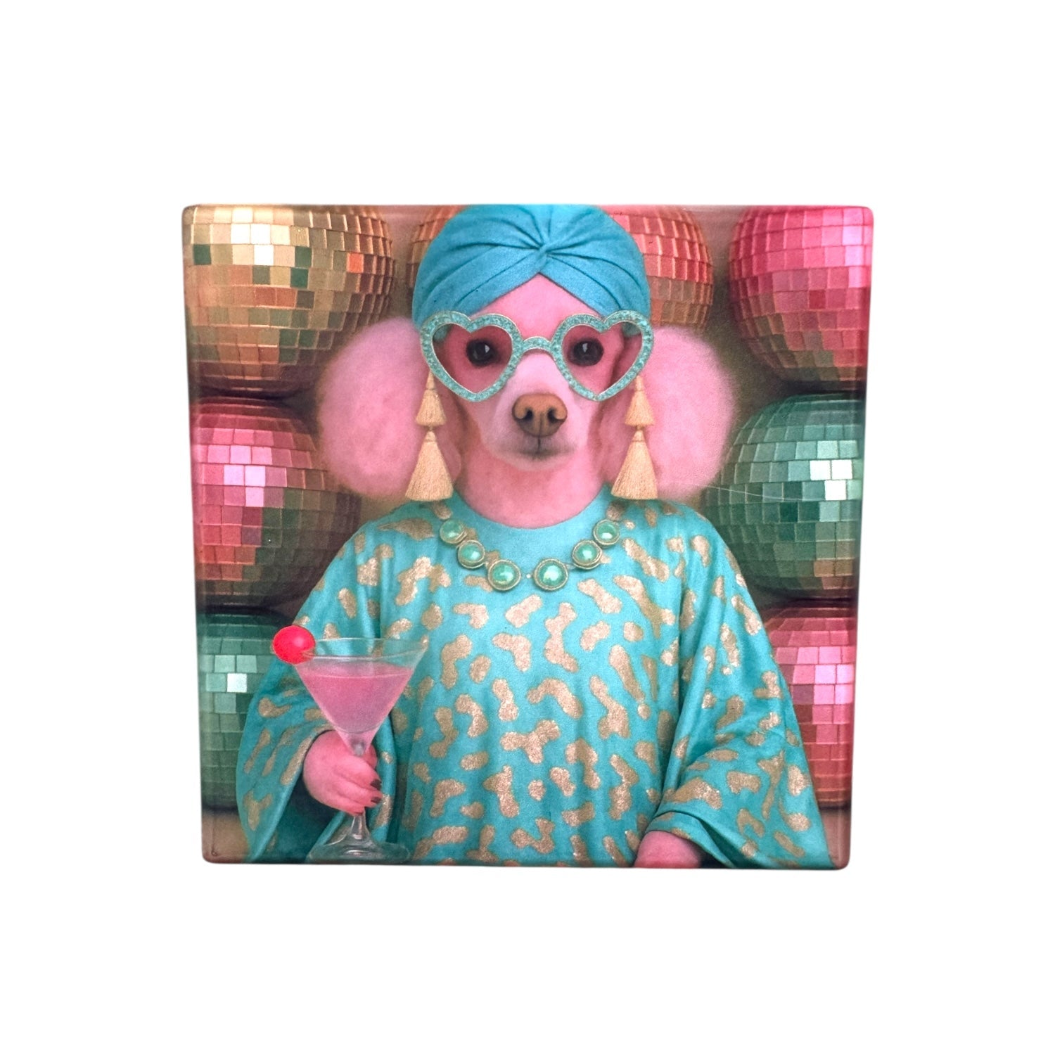 Transform every sip into a glitter-soaked celebration with our Custom Disco Drink Coasters — featuring your pet as the dazzling star of their very own Fancy Clancey character design! These coasters turn your coffee table into a runway and your cocktails into couture.