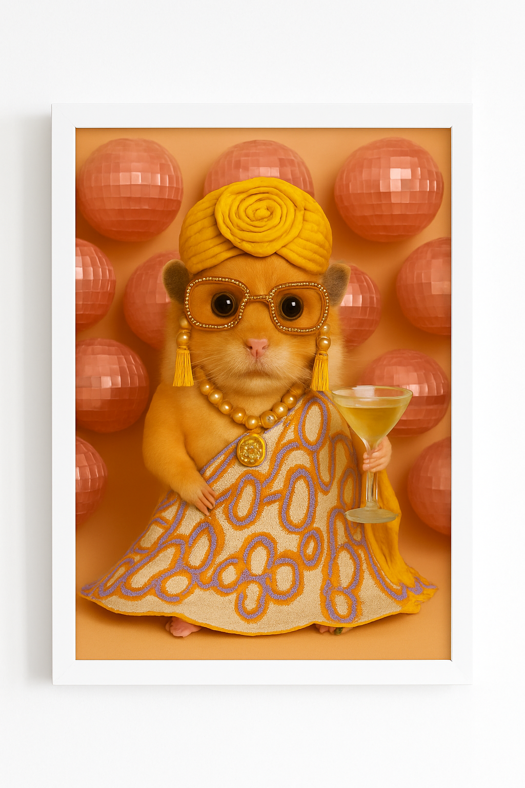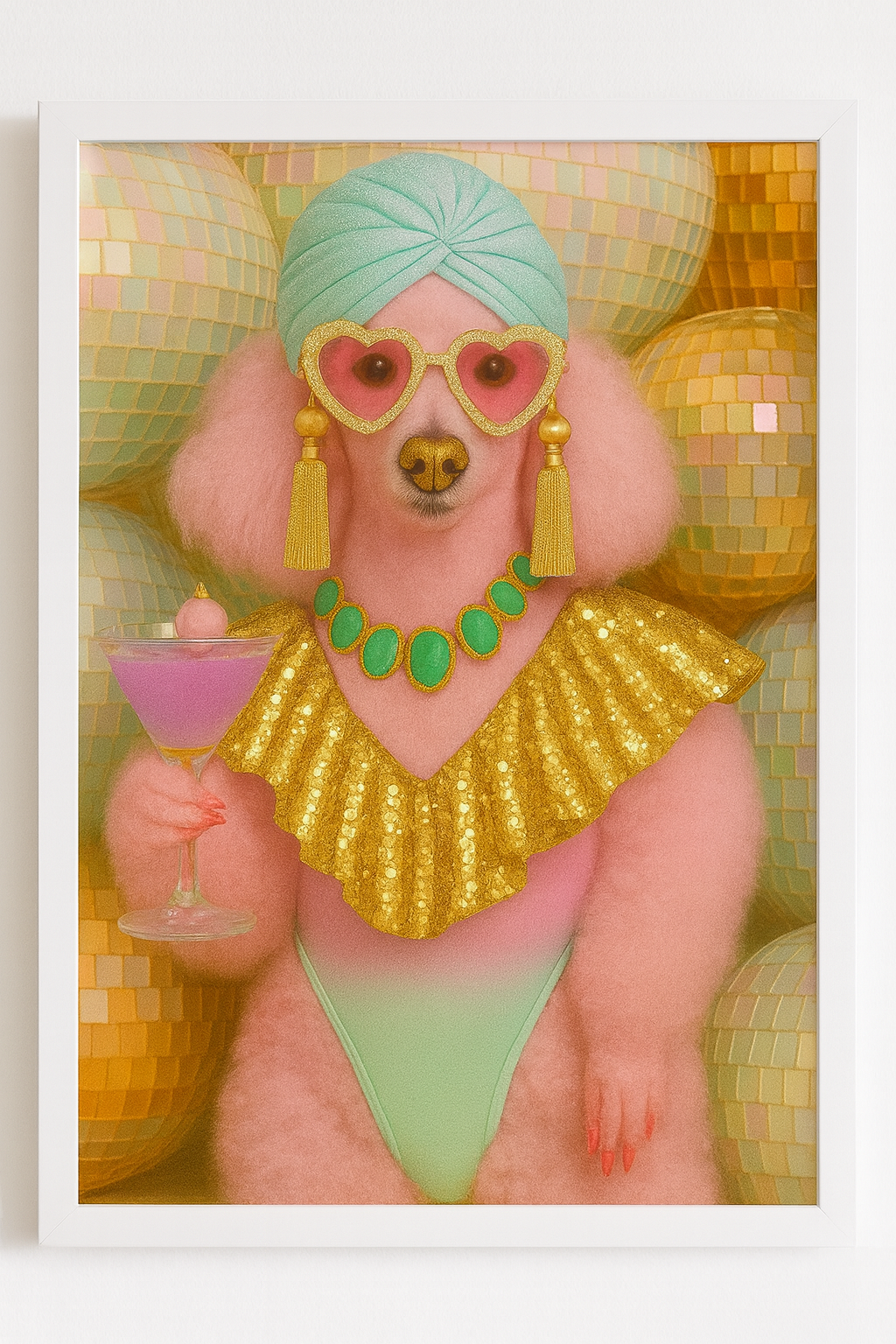 Bring your beloved pet’s inner diva to life with a fully custom Fancy Clancey Pawtrait — a glamorous, tongue-in-cheek artwork where couture meets pure mischief.